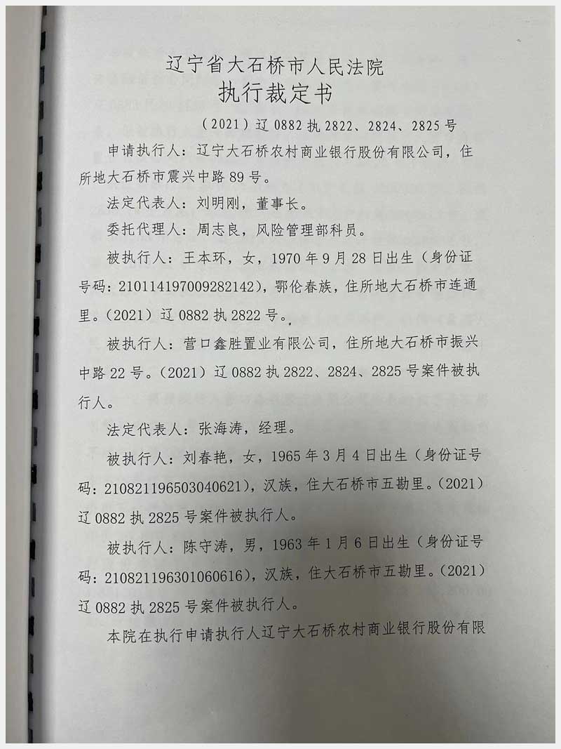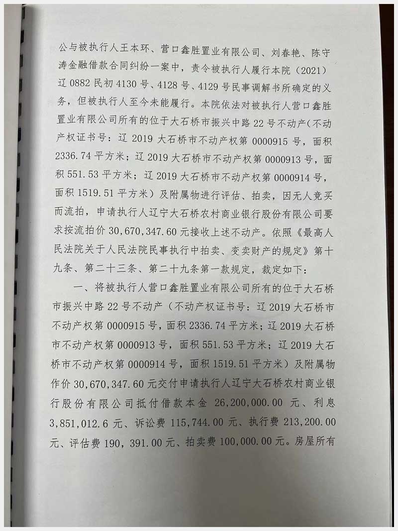 地址:大石橋市振興中路22號(鑫盛綜合樓) 標的號:10