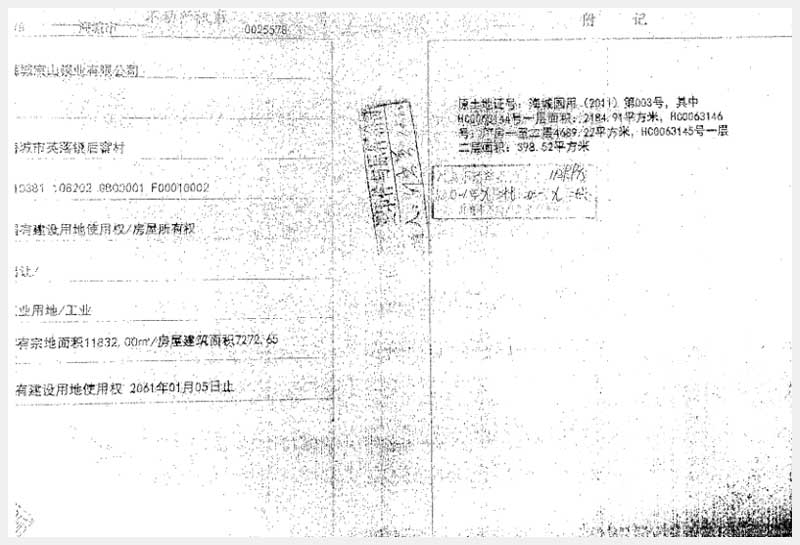名稱:海城市英落鎮(zhèn)后窨村房產(chǎn)、土地使用權(quán)及機(jī)器設(shè)備 面積:房產(chǎn):有證:7272.65㎡,無證:5963.33㎡;土地:11832㎡;設(shè)備:776套 瀏覽次數(shù):1070