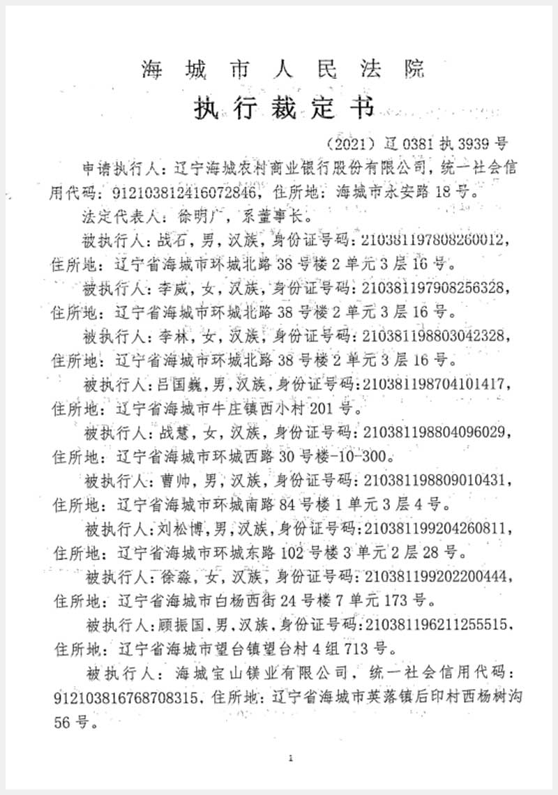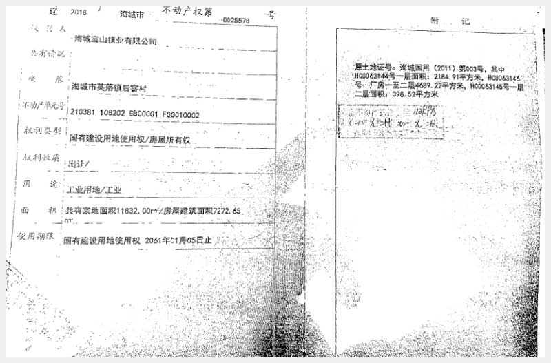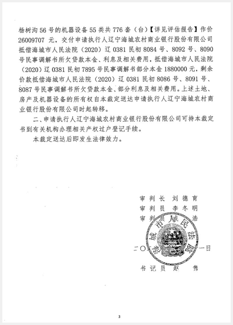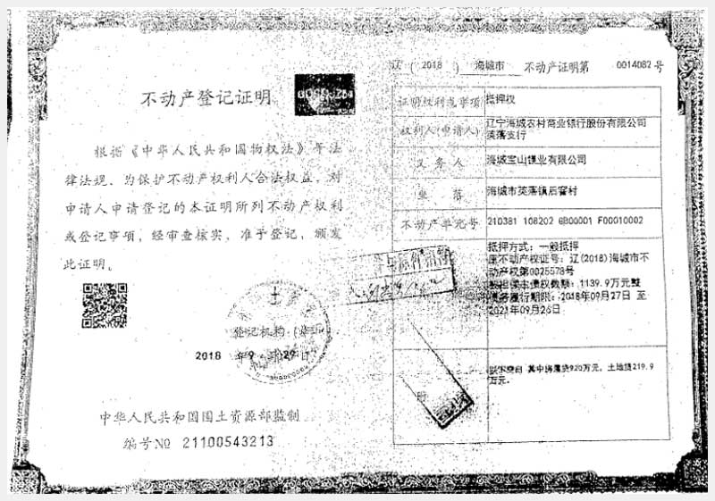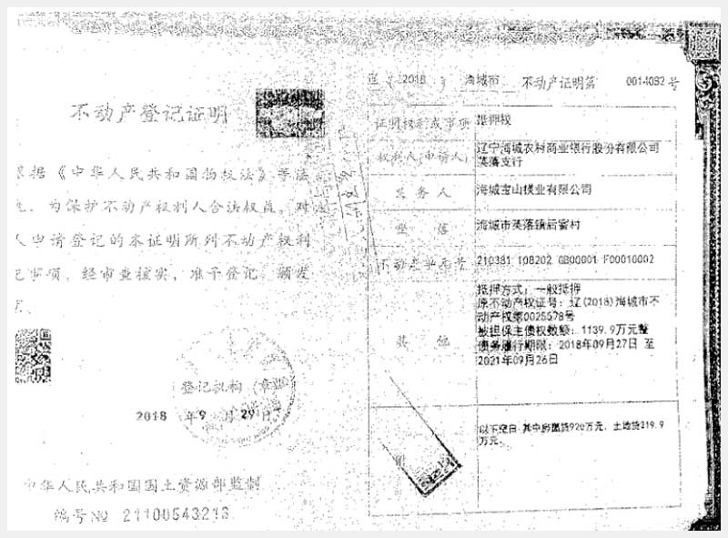 181號(hào) 海城市英落鎮(zhèn)后窨村房產(chǎn)、土地使用權(quán)及機(jī)器設(shè)備